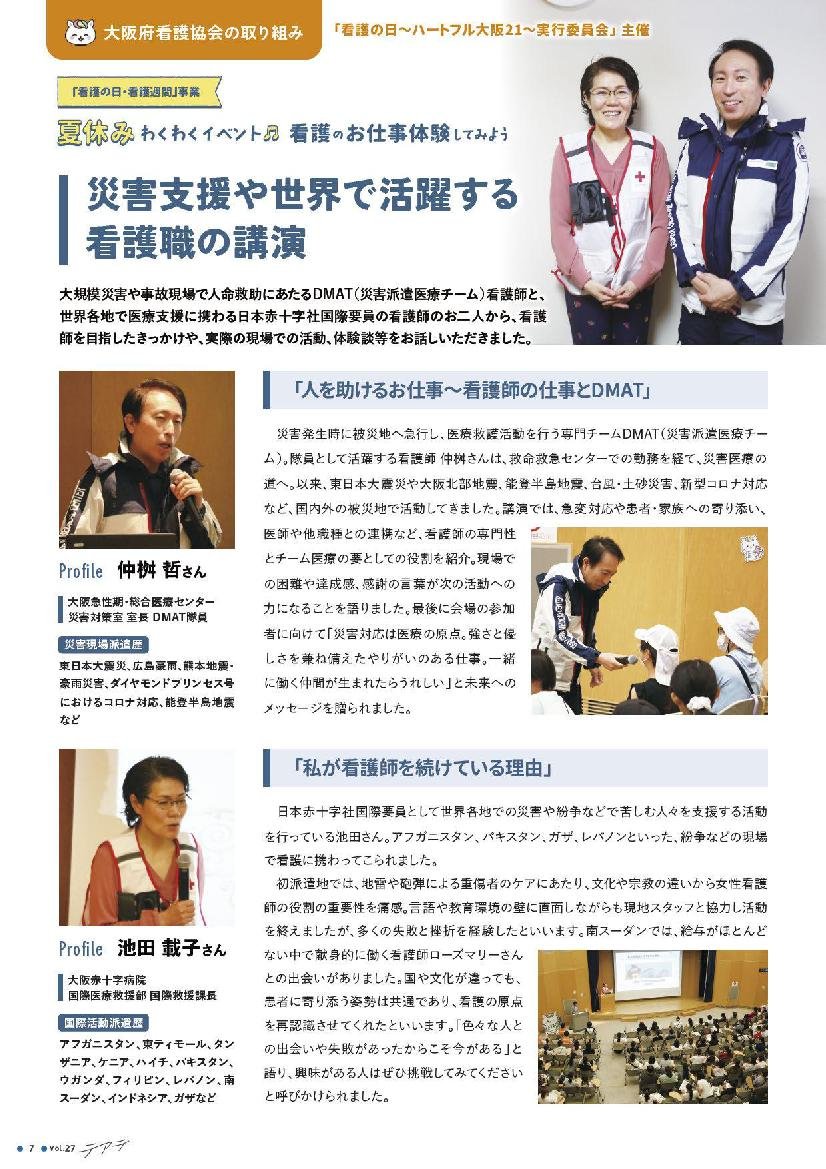 (公益社団法人 大阪府看護協会 専務理事) - 対 象:一般府民、学生、看護職
